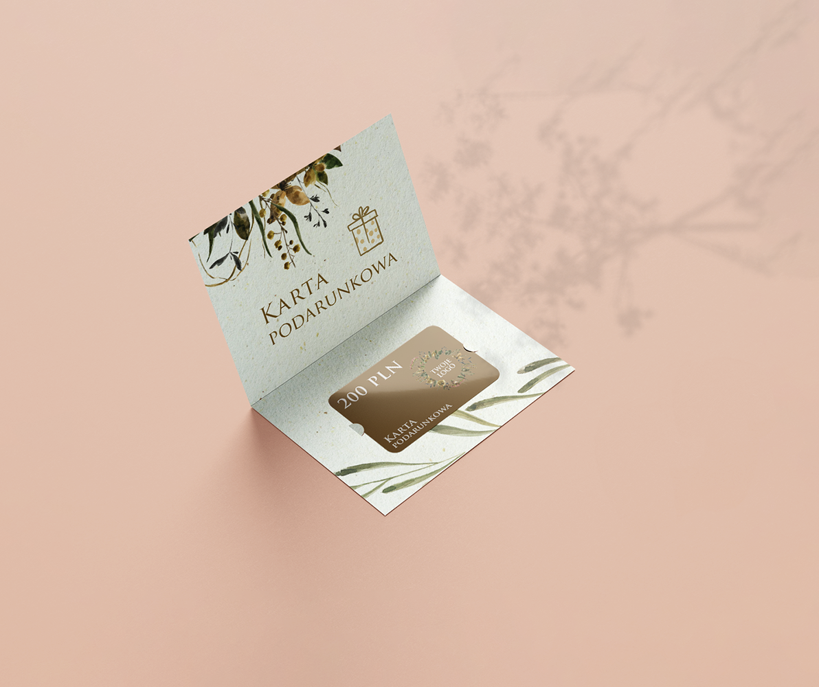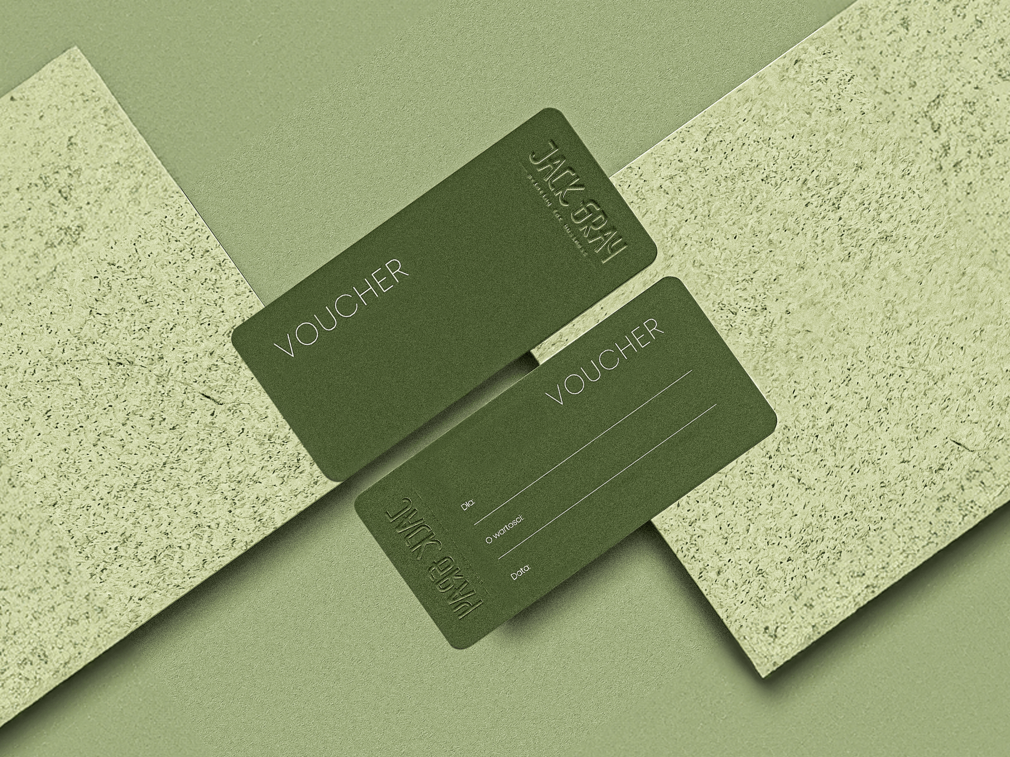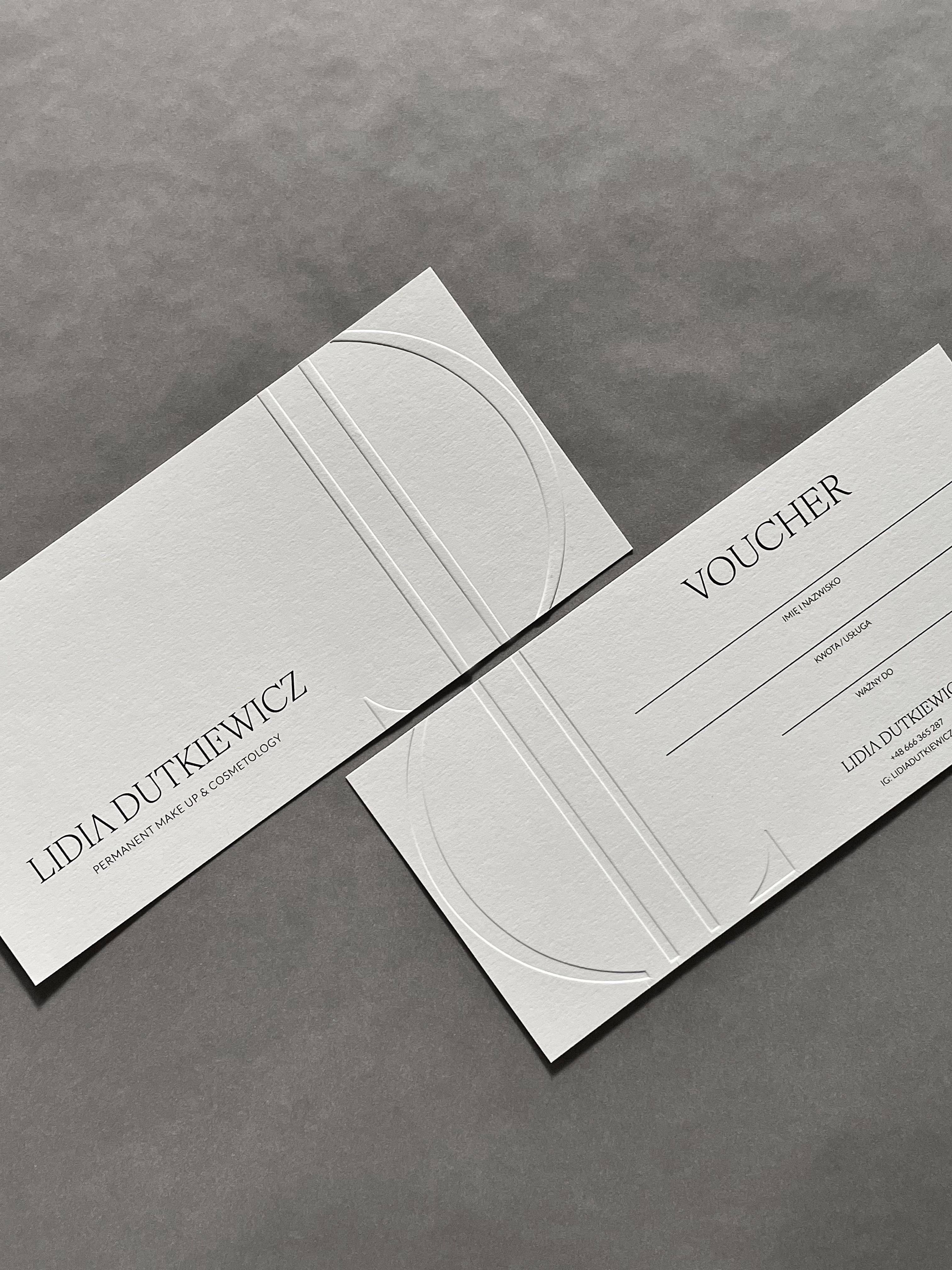 Vouchery tłoczone na jasnych ozdobnych kartonach