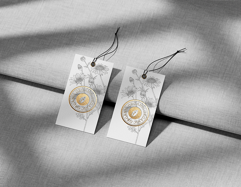 Zawieszki/metki z tłoczeniem wypukłym na jasnych kartonach