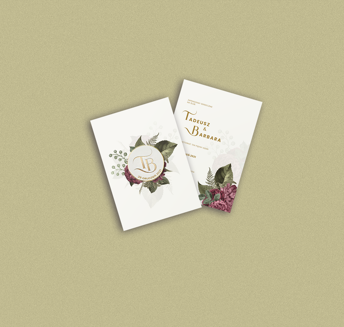 Zaproszenia złocone na ciemnych ozdobnych kartonach
